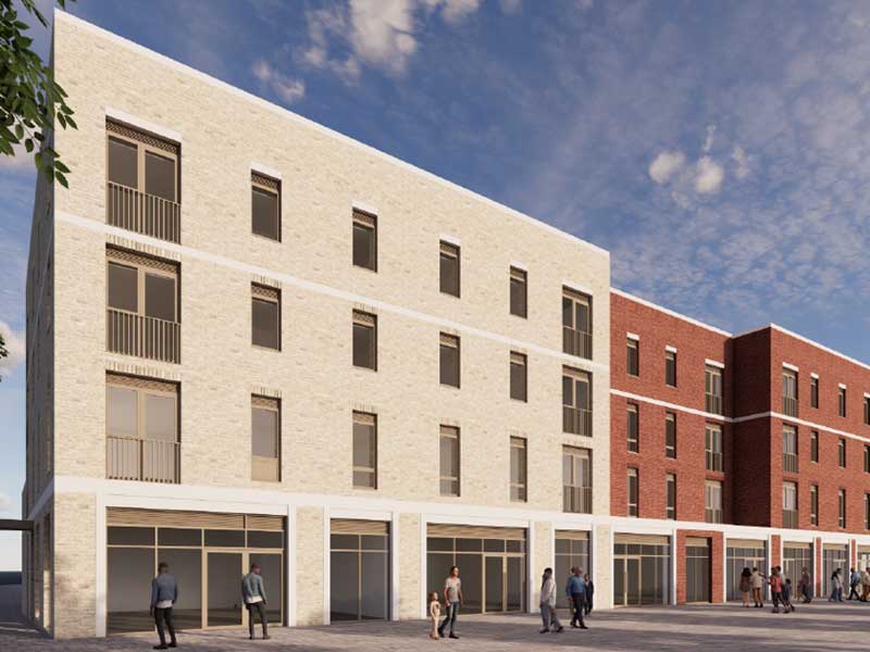 The civic square element will see the site of a former cinema and temporary car park, redeveloped to make way for retail space front onto a new public square, alongside apartments, offices and a multi storey car park.